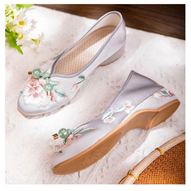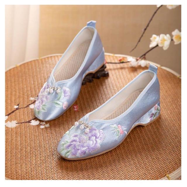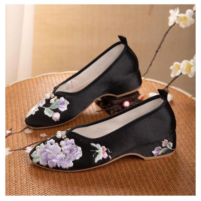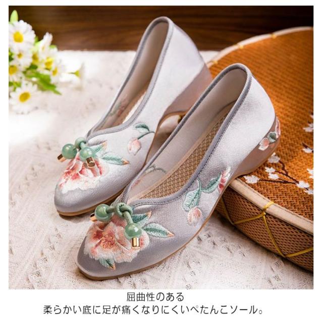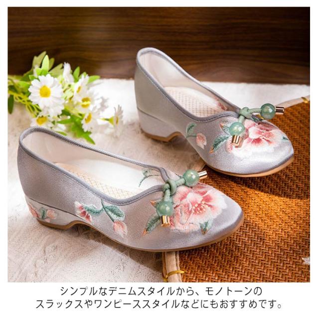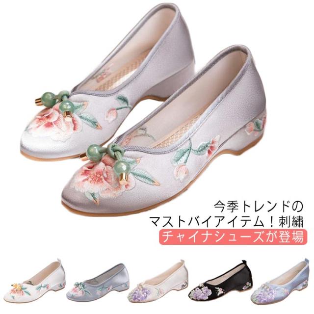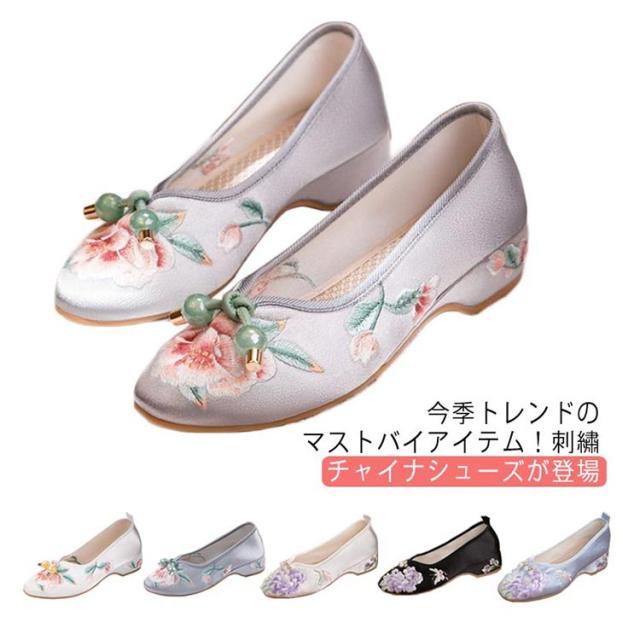 チャイナシューズ 台湾シューズ レディース 刺繍パンプス サテン 刺繍シューズ パンプス ローヒール フラットパンプス ぺたんこ 歩きやすい チャイナ シューズ 花柄刺繍 女性用 婦人靴 中華 コスプレ 唐装 漢服 柔らかい 疲れない おしゃれ