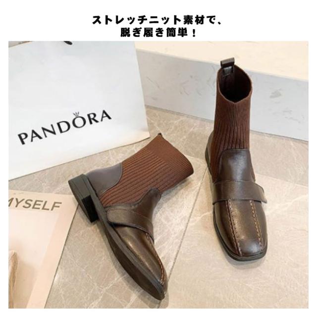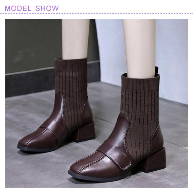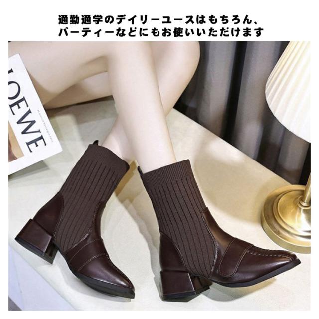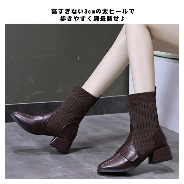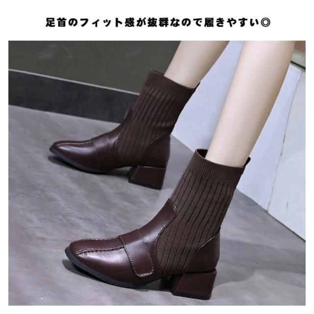 ソックスブーツ 疲れない ショートブーツ ヒール ストレッチブーツ チャンキーヒール ブーツ 太ヒール シューズ 歩きやすい 美脚 サイドゴア 春秋 ニットブーツ ショート丈 履きやすい 3cm ニットブーツ リブニット おしゃれ レディース