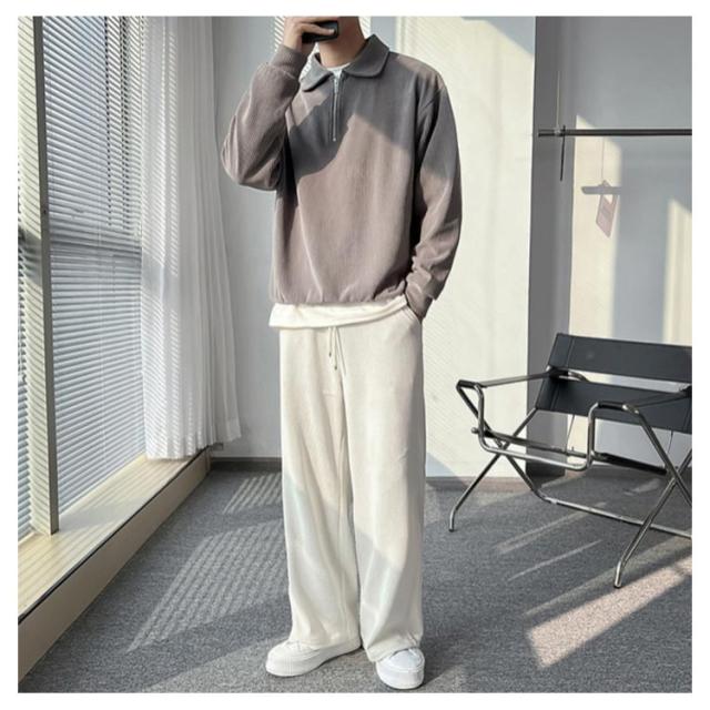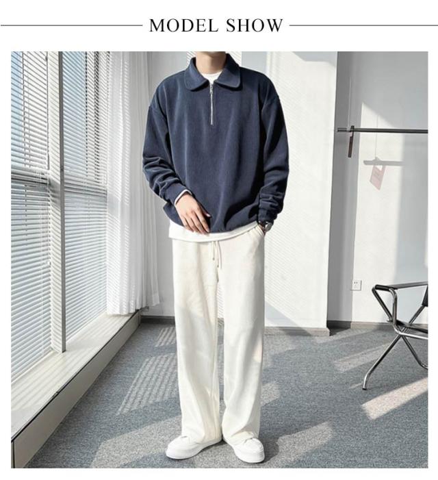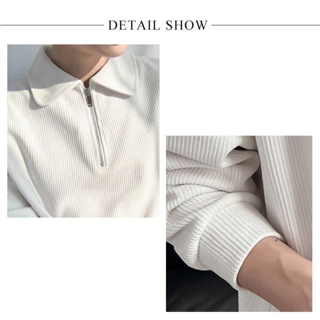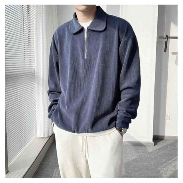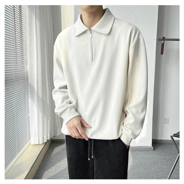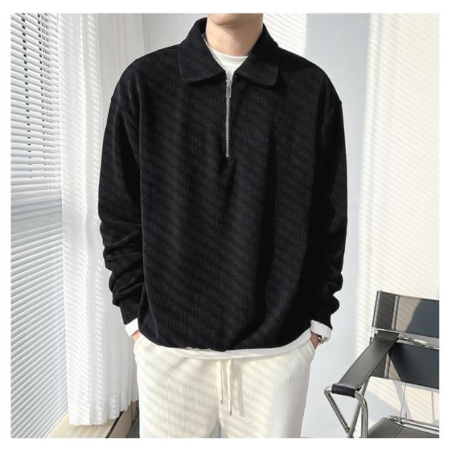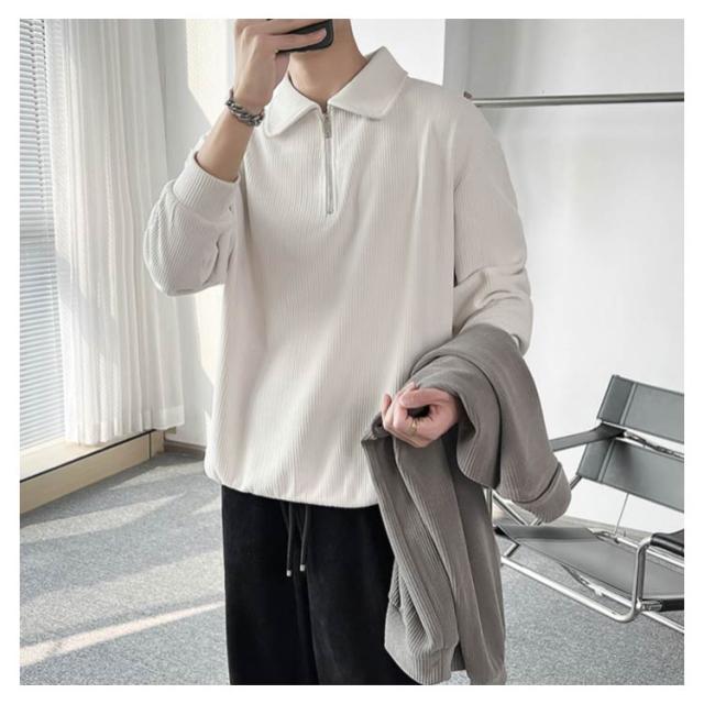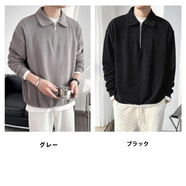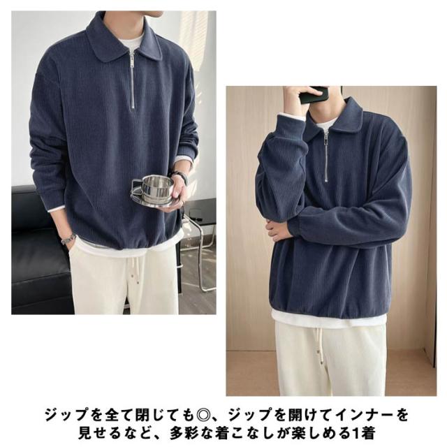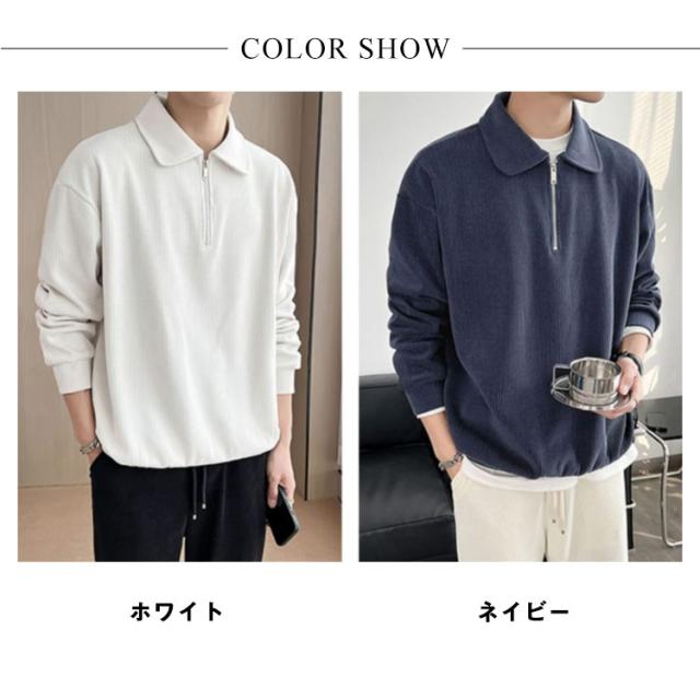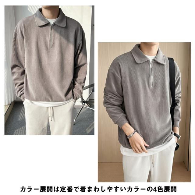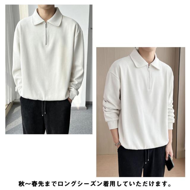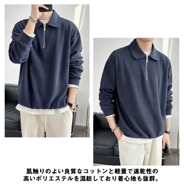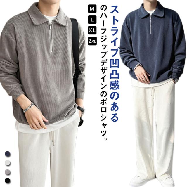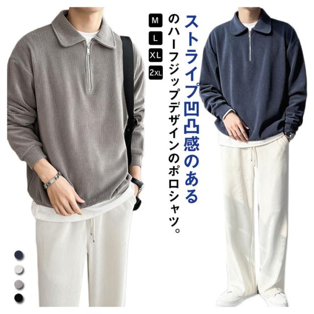カジュアル プルオーバー 春 ハーフジップ 大人 スウェットポロ 長袖 トレーナー トップス XL オフィス スエット ストライプ 【送料無料】スウェット 通勤 秋 スリム フィット 無地 大きいサイズ M L メンズ