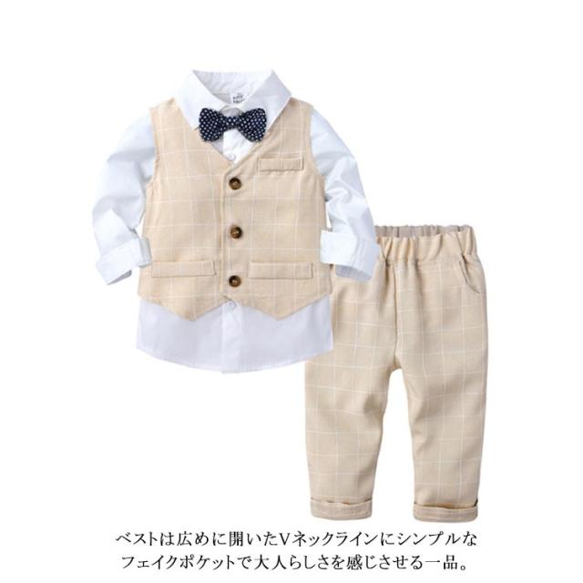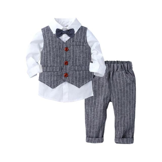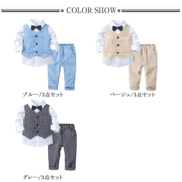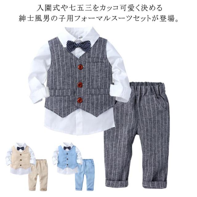 フォーマル スーツセット 子供服 子供服 男の子 ストライプ柄 長袖シャツ+ベスト+ロングパンツ 3点セット 入園式 ピアノ 発表会 保育園 結婚式 ギフト プレゼント 春 卒園式