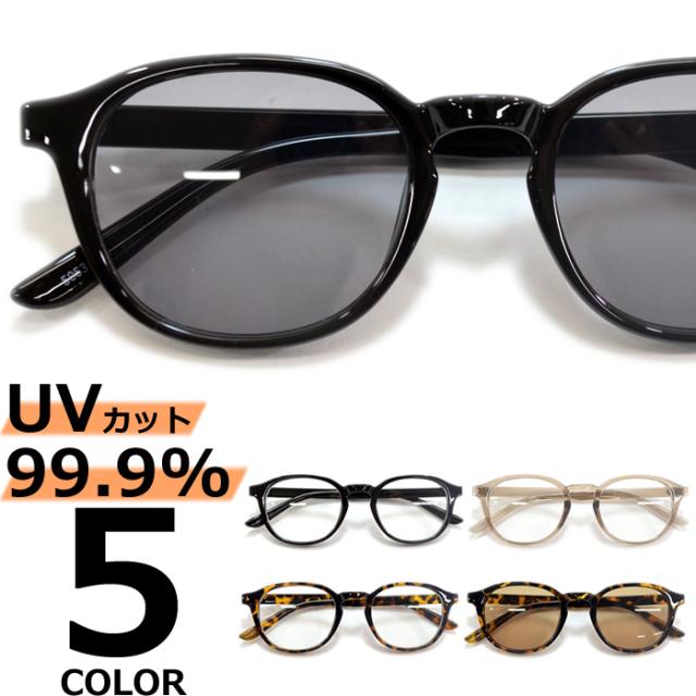 サングラス 伊達メガネ メンズ レディース オーバル ライトカラーレンズ 薄い色 ブラック ブラウン デミ ベージュ スモーク グレー クリアー 透明レンズ 全5色