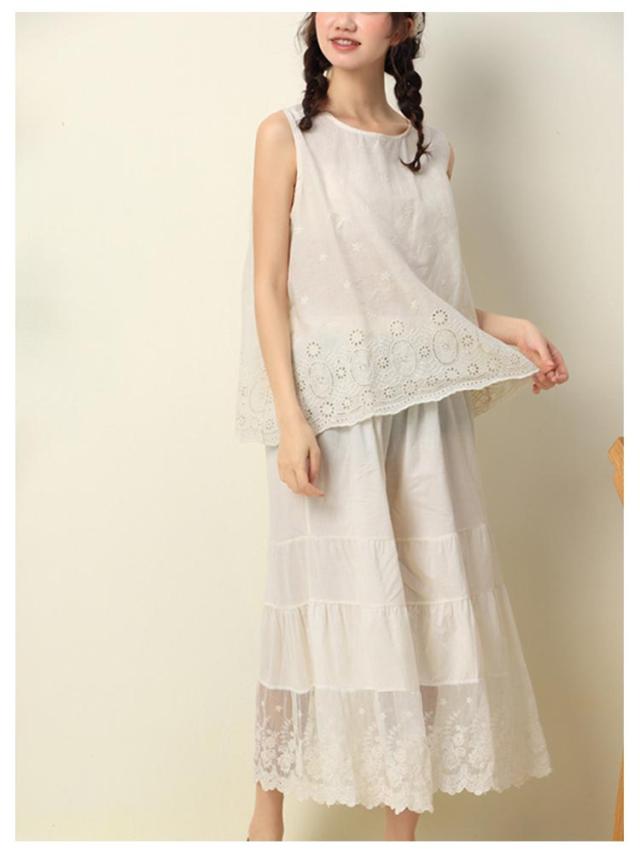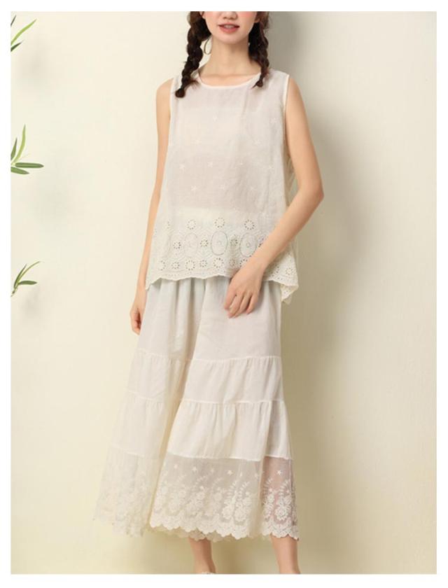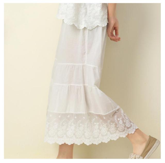 | 大人のレイヤードが華やぐ重ね着用ペチパンツ。 リラックス感あるワイドシルエットなので体型をカバーし自然に着痩せ。 贅沢に施された刺繍がスタイリングに華やかさを添えてくれます。 風を感じる裾レースで華やかにレイヤードを楽しむ1枚です。 | |