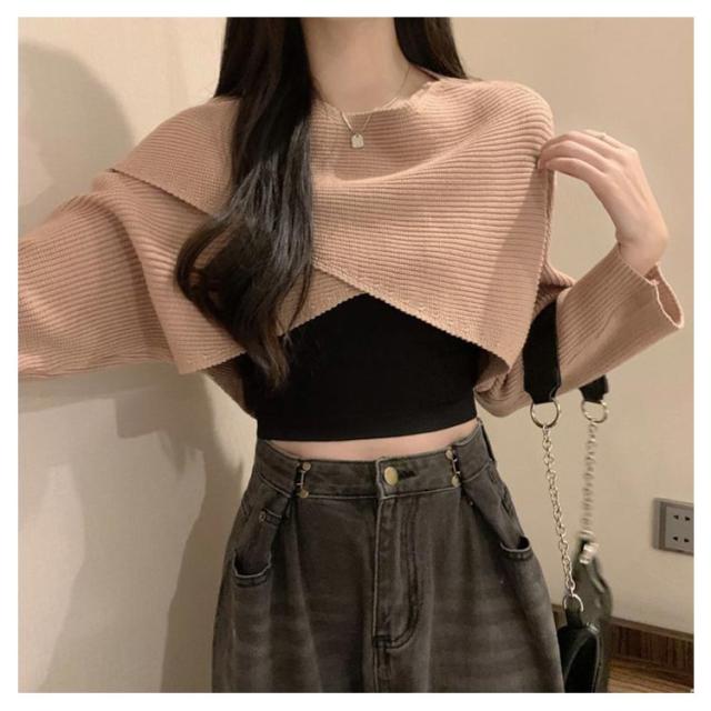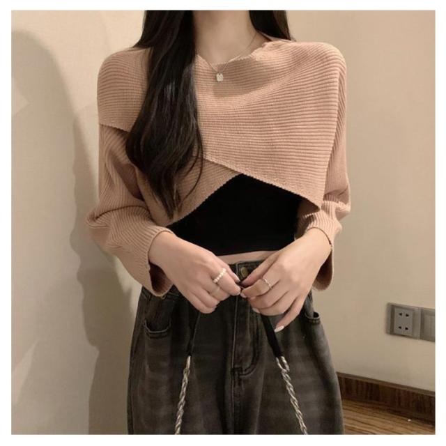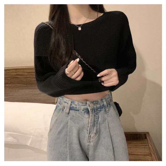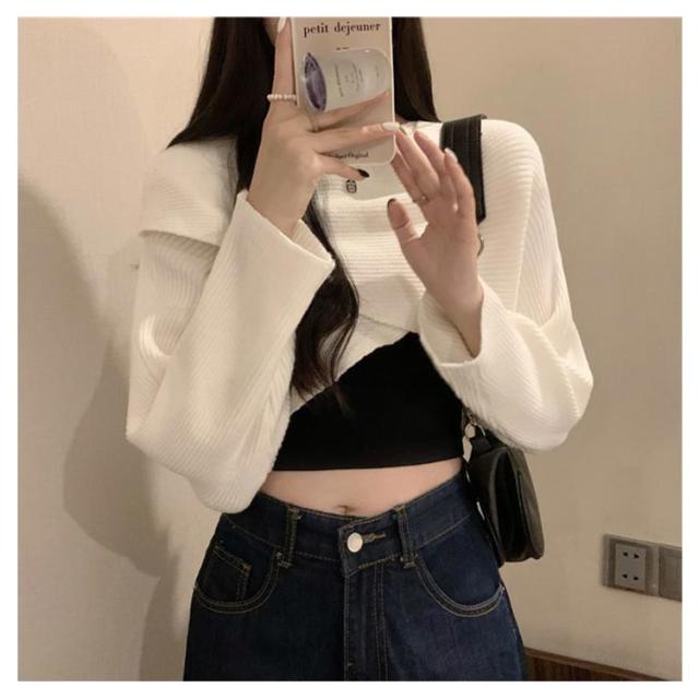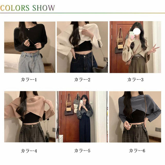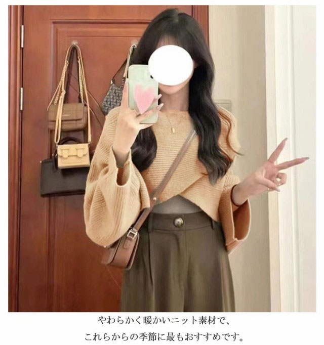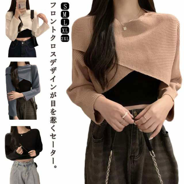 フロントクロス ニット ショート丈 レディース ニットトップス セーター ニットセーター プルオーバー カットソー 長袖 Vネック ゆったり 柔らかい コーデ シンプル カジュアル お出かけ 通勤 通学 S M L XL 2XL