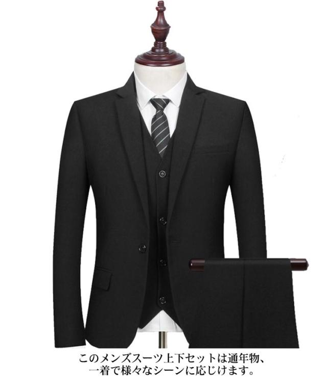 スリーピース ビジネススーツ スリム メンズ 通年 フォーマル 礼服 上下セット 洗える 2つボタン 結婚式 紺 グレー ネイビー 秋冬 セットアップ 春 パーティー 就職 卒業式 入学式 スーツ 無地 スーツ 黒