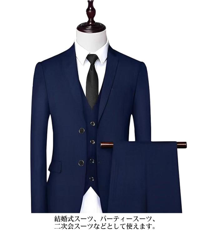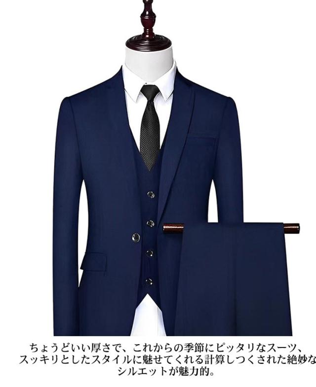 | セット内容:ジャケット+ベスト+スラックス さりげない絶妙シルエット、洗練された大人のビジネススーツセットです。 ポリエステルとビスコース繊維の混紡生地で、スーツセットはドレープ感があり、着用で不収縮です。 このメンズスーツ上下セットは通年物、一着で様々なシーンに応じけます。 結婚式スーツ、パーティースーツ、二次会スーツなどとして使えます。 ちょうどいい厚さで、これからの季節にピッタリなスーツ、スッキリとしたスタイルに魅せてくれる計算しつくされた絶妙なシルエットが魅力的。 合わせるアイテムによってきれいめからカジュアルまで幅広いコーディネートを楽しめます。 | |