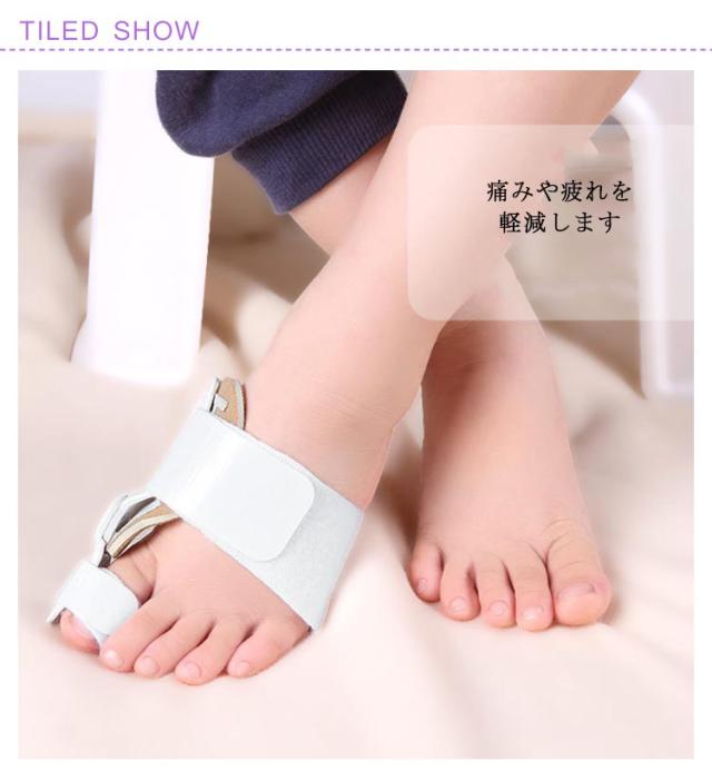 | 外反母趾変形を緩和するために3点圧力システム採用 日常生活ではもちろん、活動中の昼もお休み中の夜もしっかりと固定します。 痛みや疲れを軽減します 足指をやさしく保護する外反母趾専用サポーターで歩行時に痛みが伴う方 親指が曲がってきた方、親指の根元が靴にぶつかる方などにオススメです。 耐久性に優れ、長期間使用しても変形しません。 汚れたら水洗いできるので、繰り返し清潔にお使いいただけます。 | |