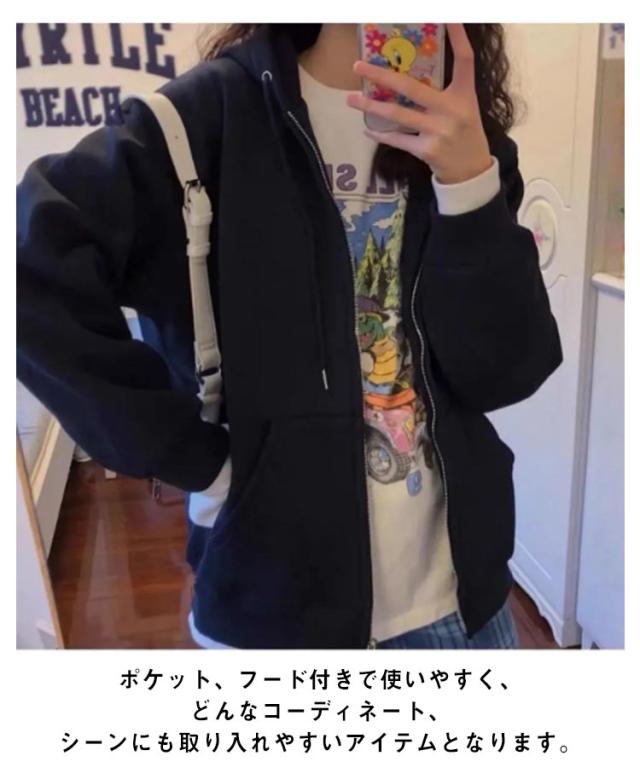 ジップアップ レディース トップス ジップパーカー コート シンプル ジップアップパーカー ジャケット パーカー おしゃれ オーバーサイズ 体型カバー 長袖 ブルゾン アウター 羽織 ゆったり 春秋冬 撥水 大人 防風 アウター 大きいサイズ