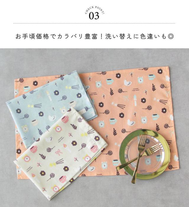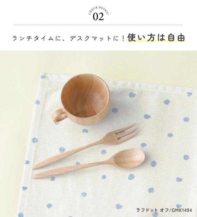 学校の机にぴったりな大判サイズ!お弁当等のランチタイムに活躍するランチクロスは大人はもちろん、お子様の小学校や幼稚園の給食等でも便利。1枚布の作りで、お手入れも楽ちん。かわいくておしゃれなデザインは、大人も子どももうれしい。ランチョンマットととして食事にはもちろんのこと、デスクマットなどインテリアとしてもお使いいただける便利な大判ランチマット。