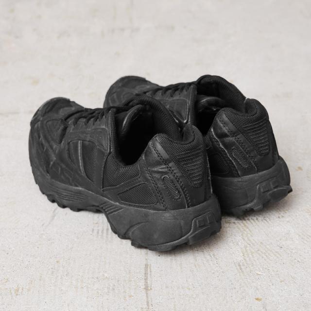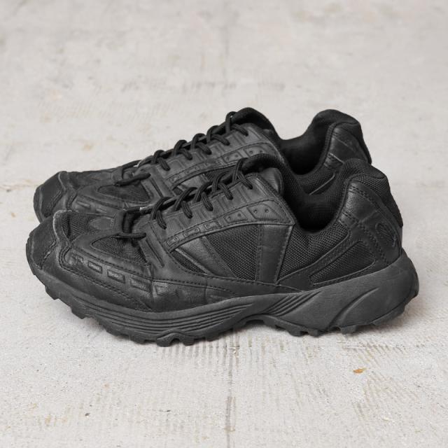 ドイツ軍にトレーニング用に支給されていたスニーカーです。比較的近代のモデルなので、インソールのクッション性や足首のホールド感など、履き心地や機能性にも優れた造りとなっています。都会的なギア感のある凝ったデザインながらブラック単色なので主張は控えめで、ボリューム感のあるフォルムが素朴でクラッシックな雰囲気。 様々なコーディネートにマッチし、トレーニングはもちろん普段使いにも 幅広く活躍するアイテムです。