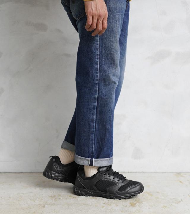 ミリタリーシューズの中でも名作と言われるジャーマントレーナー。ホワイトレザーとスエードを使用したスニーカーが広く知られていますが、こちらは高品質の合成素材を使用し、よりモダンにアップグレードした一足。クッション性の高いインソール、足首のホールド感が増す肉厚なトップラインなど、履き心地や機能性にも優れた造りとなっています。アッパーには独特なハニカム柄のメッシュ素材が使われていて、通気性が良く熱や湿気が篭りにくくなっています。 脱ぎ履きし易いプルバックが備わっているのもポイントです。