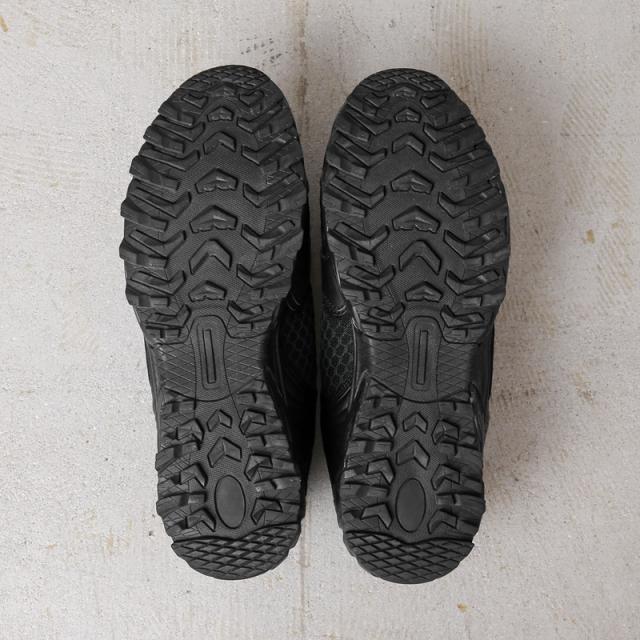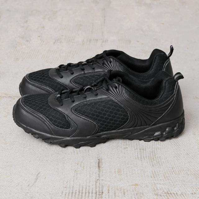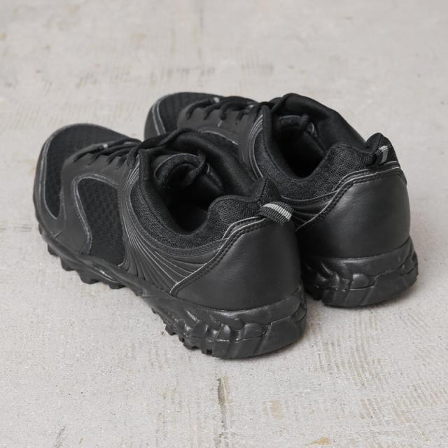 | 商品説明 | 実物 USED ドイツ軍 トレーニングシューズ #1のご紹介です。 ミリタリーシューズの中でも名作と言われるジャーマントレーナー。ホワイトレザーとスエードを使用したスニーカーが広く知られていますが、こちらは高品質の合成素材を使用し、よりモダンにアップグレードした一足。 クッション性の高いインソール、足首のホールド感が増す肉厚なトップラインなど、履き心地や機能性にも優れた造りとなっています。 アッパーには独特なハニカム柄のメッシュ素材が使われていて、通気性が良く熱や湿気が篭りにくくなっています。脱ぎ履きし易いプルバックが備わっているのもポイントです。 オールブラックでダッド感のあるボリューミーなフォルムと、ミルスペックな機能性がトレーニングはもちろん、普段使いにもデイリーに活躍するアイテムです。 | |||||||||||||||||