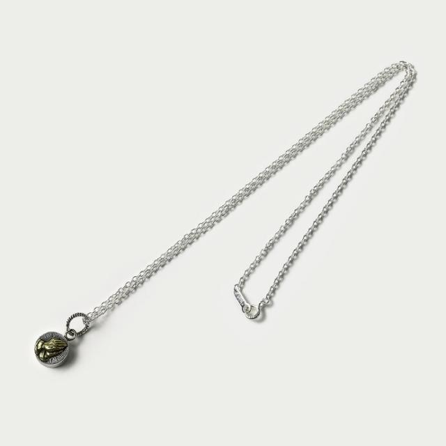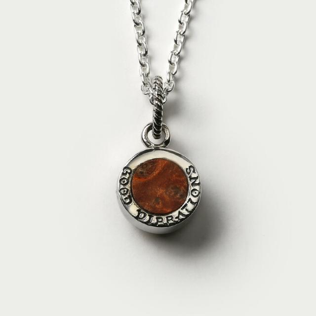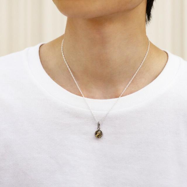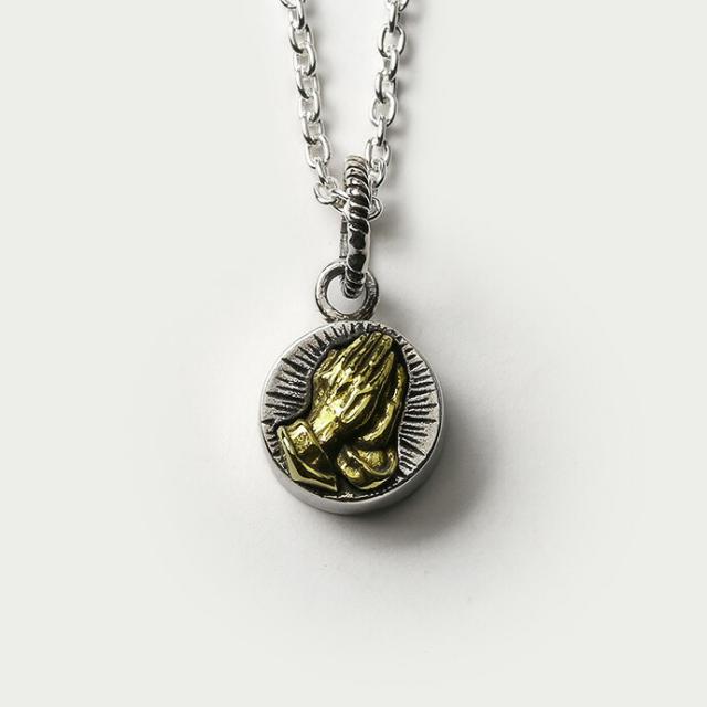 祈りの手をモチーフにした「プレイハンド」をデザインしたペンダント。 プレイハンドはメキシコ系アメリカンの間ではメジャーなデザインとして知られており、「幸運」「愛」「平和」などの意味を込めて使われることも。裏面にはウッド(木)が埋め込まれています。厚みがあり、小さいながらも存在感のあるアイテムです。