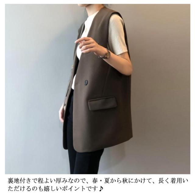 きれいめ レディース 夏 ロング 春 ジレ テーラードベスト 送料無料 キレイめ レディース ロングベスト テーラード ノースリーブ シンプル 羽織り 前開き 無地 通勤 黒 ベスト モカ 茶色 M L 20代 スーツベスト