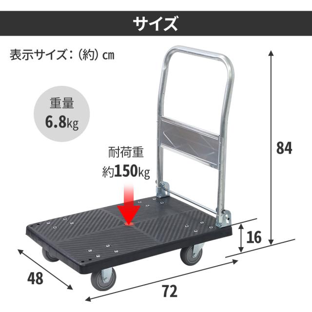 【キャスター固定可能】 台車 耐荷重 150kg キャリーカート 手押し台車 平台車 コンパクト 移動 転がす 荷物 積荷 荷車