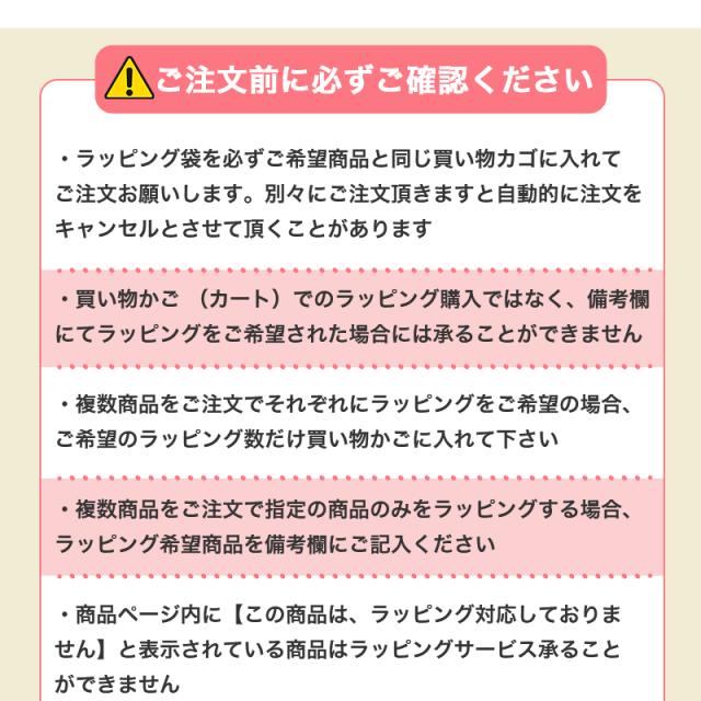 商品数量とご購入ラッピング枚数が一致しない場合、商品の包装はせず、ラッピングバッグを同梱してお送りいたします。