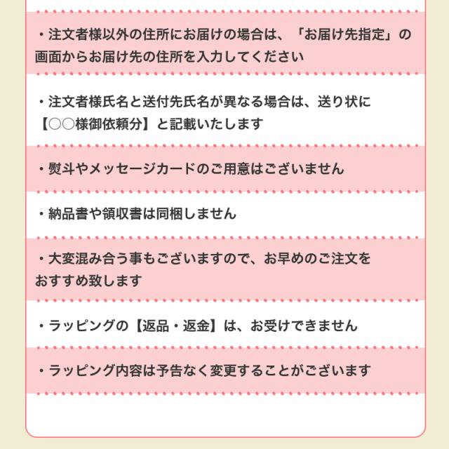 ラッピングを商品とご一緒に注文されていない場合、ラッピングをせずに商品を出荷いたします。