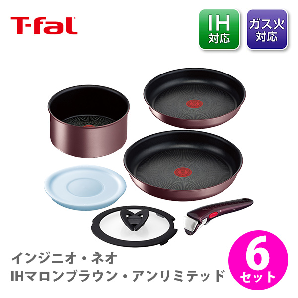 ティファール T-FAL フライパン 6点セット IH対応 L38593 送料無料 インジニオ・ネオ IHマロンブラウン・アンリミテッド セット6 フライパン 片手鍋 プレゼント