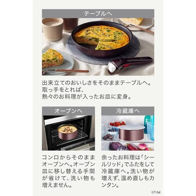 セット内容:フライパン 22/26cm、ソースパン 18cm、バタフライガラスぶた 18cm、シールリッド 18cm、専用取っ手(フィグ・ブラウン) 1本