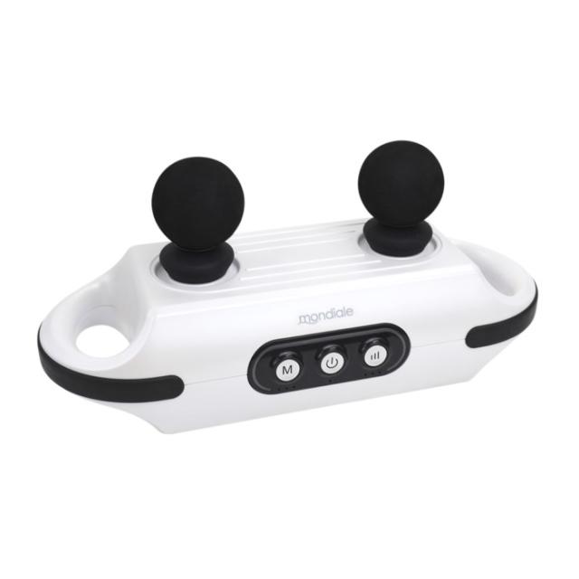 2つの振動柱に、形状の異なる3つのアタッチメントを使用箇所やお好みによって付け替えて、様々な使い方ができるボディメンテナンスアイテム『モンデール 筋膜ビート KB1』。