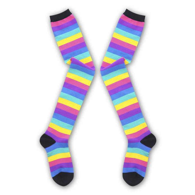 i Party Timeレインボー★ニーハイ コスプレ ニーハイソックス レインボー カラフル 靴下 ニーハイ ニーソ おしゃれ コスプレ衣装 コスチューム 仮装