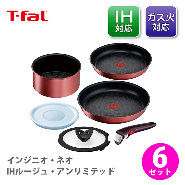 T-fal ティファール インジニオ・ネオ IHルージュ・アンリミテッド セット6 L38391 送料無料 フライパン IH対応 セット ギフト 取っ手が取れる 取っ手の取れる 収納 片手鍋 なべ フライパン 取っ手 蓋 フタ ふた キッチン おしゃれ 人気