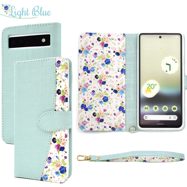 スマホケース 上品 花柄 Google Pixel 6a専用 手帳型 カバー ハッピーブーケ フラワー ストラップ付 GooglePixel6a グーグルピクセル6a カードポケット 保護 TPU 4色展開