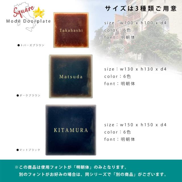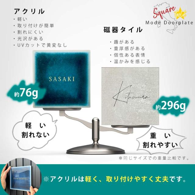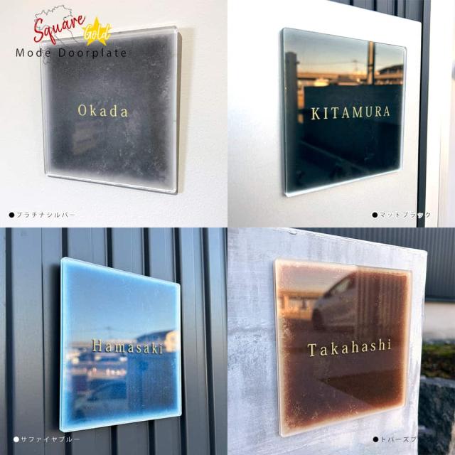 表札 おしゃれ 戸建て 宅配ボックス 郵便ポスト アクリル ドアプレート 正方形 ネームプレート 穴開け不要 工事不要 オシャレ スマート シンプル リッチ 高級感 貼るだけ 軽い 軽量 マンション アパート 賃貸 戸建 両面テープ 接着 箔押し 金箔 Mode Doorplate 明朝体