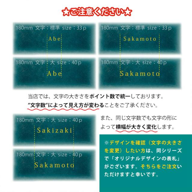 - 想像していた以上に素敵な表札でした。 エメラルドグリーンにゴールドで全て大文字で入れてもらいましたが見やすいです。 両面テープもついていたので、届いてすぐにつけられました。耐久性はまだ分かりませんが、...