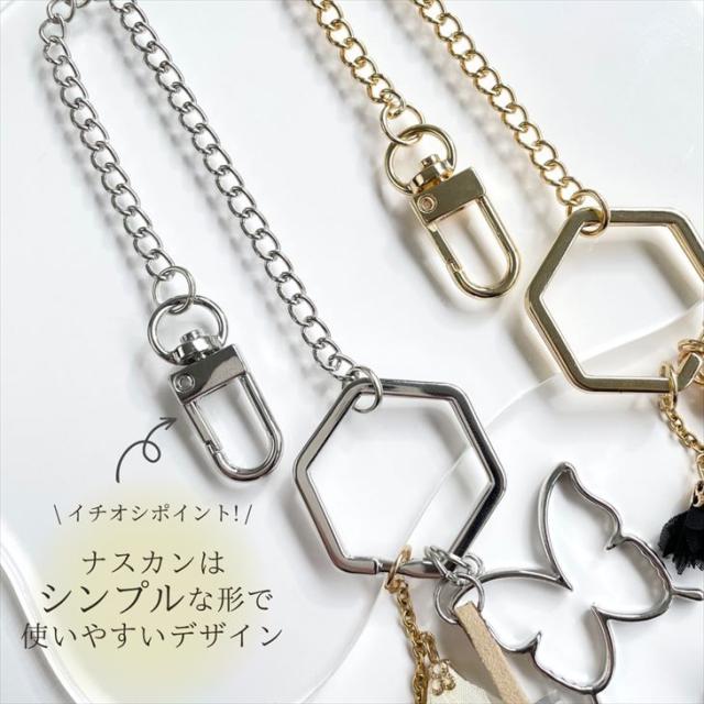 キーホルダー バッグチャーム ニッケルフリー 金属アレルギー対応 アクセサリー パーツ シルバー 210mm 10個 ヘキサゴン 変色防止加工済 問屋 バッグチェーン ハンドメイドパーツ ナスカン キーチェーン 金属パーツ さや工房 手作り アクセサリーパーツ 卸 おすすめ