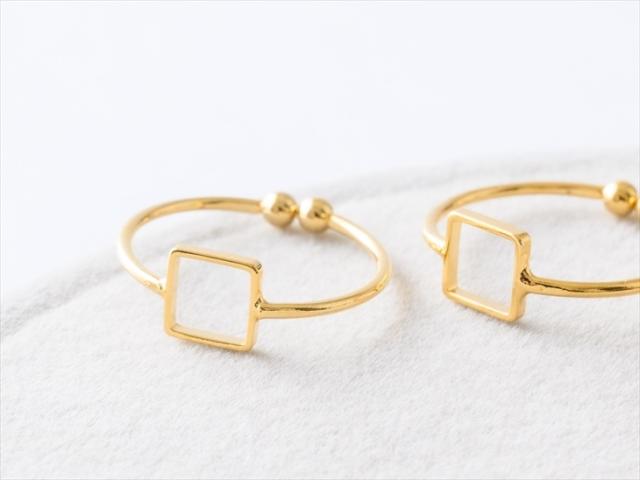 【サイズ】フリーサイズ調節可能 最小サイズ約9号〜(指輪内径:約15.5mm) フレーム:約6×6mm フレーム厚さ:約1mm