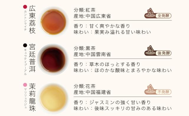人気の白茶や紅茶など合計6種類を飲み比べ
