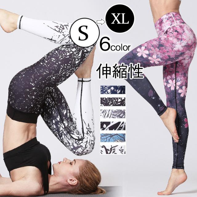 激安 ヨガパンツ レディース ヨガウェア プリント レギンス ボトムス トレーニング フィットネス カジュアル 細身 着痩せ ダン