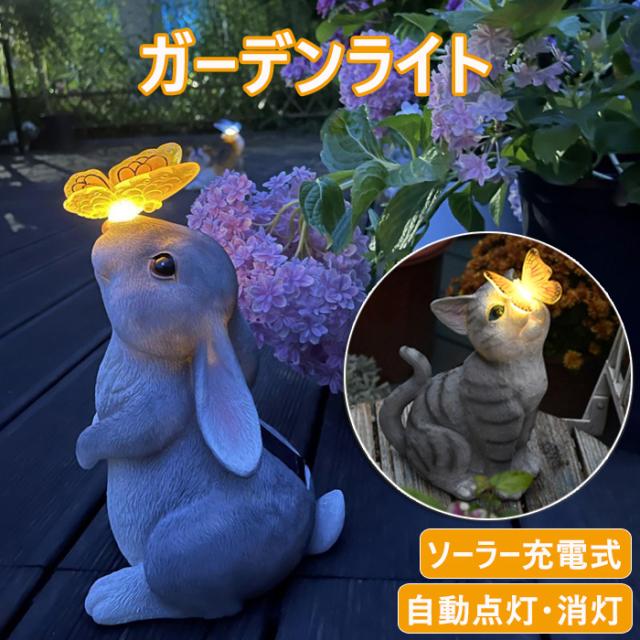 「クーポン配布中」ガーデンライト ソーラーライト飾りライト 愛らしいラビット 犬 置物ライト 雰囲ライト 屋外防水 雰囲気作り ソーラー ガーデニング 自動点灯消灯 玄関 歩道 プレゼント ギフト 暖色 樹脂製