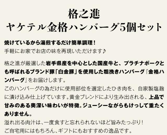 ハンバーグ 冷凍 ギフト 格之進 ヤケテル金格ハンバーグ 5個入 1個120g 湯煎 国産 和牛 白金豚 冷凍便 同梱不可 指定日不可 産直