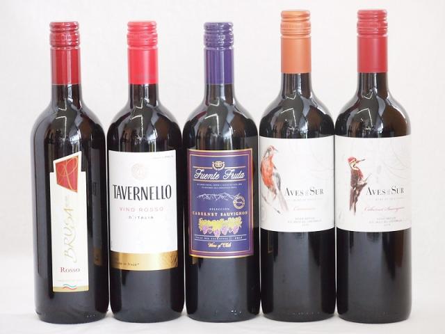 イタリア×チリ赤ワイン5本セット(ブルーサ ロッソ フエンテフルータカベルネ デルスールカベルネ タヴェルネッロ ロッソ デルスールカルメネール) 750ml×5本