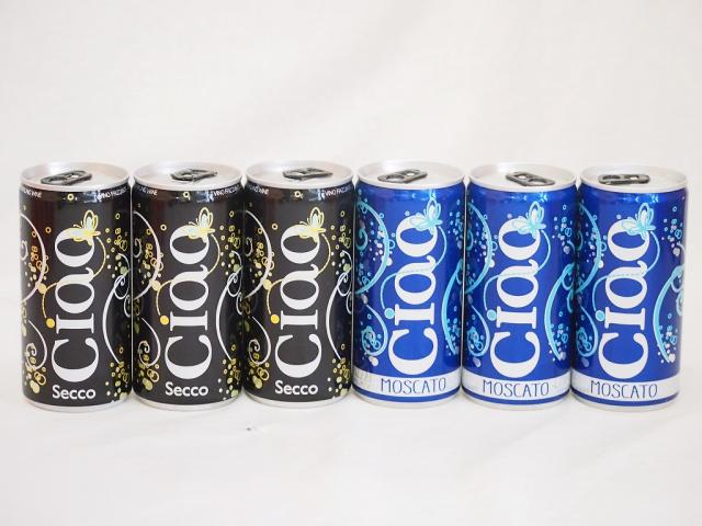 飲みきりイタリアワイン缶6本セット(チャオ モスカート 甘口微発泡白ワイン チャオ ビアンコ 辛口微発泡白ワイン) 200ml×6本