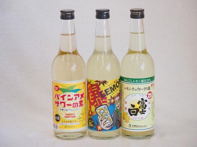 本格酎ハイの素3本セット(サワー専用 爆レモン パインアメサワーの素 レモンチュウハイの素 富士白) 600ml×3本