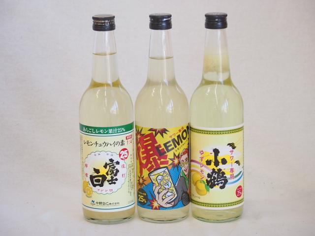 本格酎ハイの素3本セット(サワー専用 爆レモン レモンチュウハイの素 富士白 サワー専用 ゆずレモン) 600ml×3本