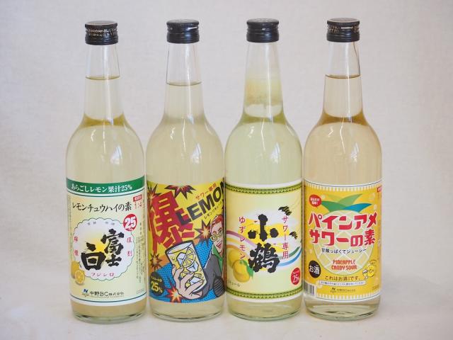 本格酎ハイの素4本セット(サワー専用 爆レモン パインアメサワーの素 レモンチュウハイの素 富士白 サワー専用 ゆずレモン) 600ml×4本