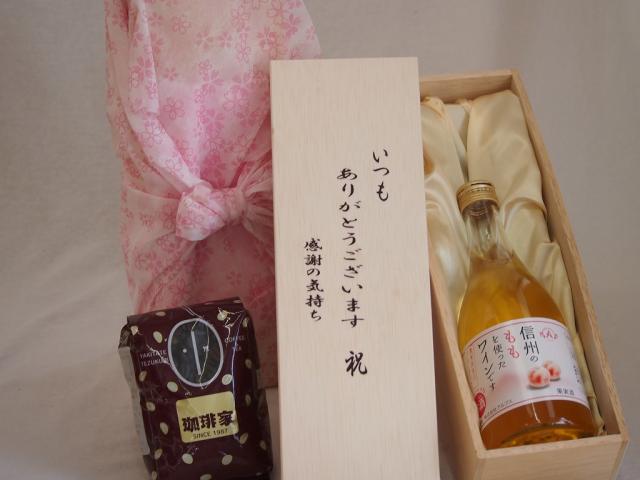 贈り物いつもありがとう木箱と珈琲豆セットオススメ珈琲豆(特注ブレンド200g)信州ももを使ったワイン (長野県) 500ml