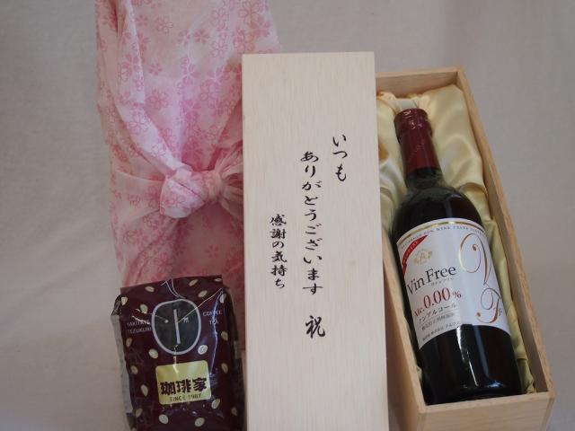 贈り物いつもありがとう木箱と珈琲豆セットオススメ珈琲豆(特注ブレンド200g)ノンアルコールワインヴァンフリー赤 (長野県) 720ml