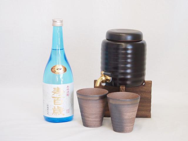 本格焼酎サーバー1000cc(18cm×24cm 1kg)三重県萬古焼き備前金彩ペアカップ(200ml×2個)東酒造 本格芋焼酎 白麹仕込み寿百歳 (鹿児島県) 720ml×1本