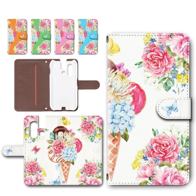 mamorino6 ケース 手帳型 カメラ穴あり 花柄 x スイーツ かわいい お花 コーン ミックス mamorino6 カバー shf35 au キッズケータイ スマホケース マモリーノ6 ケース 手帳ケース 手帳 まもりーの6 けーす 子供用