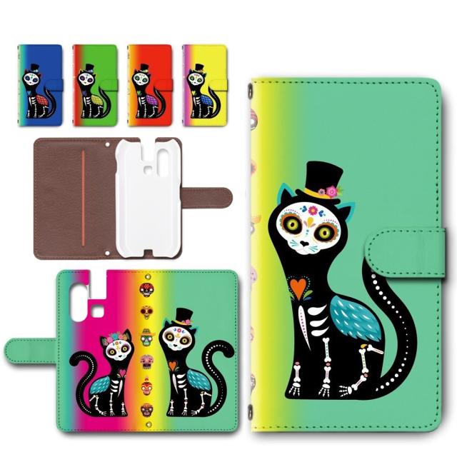 mamorino6 ケース 手帳型 カメラ穴あり 死者の日 シュガースカル 猫柄 虹色 グラデーション mamorino6 カバー shf35 au キッズケータイ スマホケース マモリーノ6 ケース 手帳ケース 手帳 まもりーの6 けーす 子供用