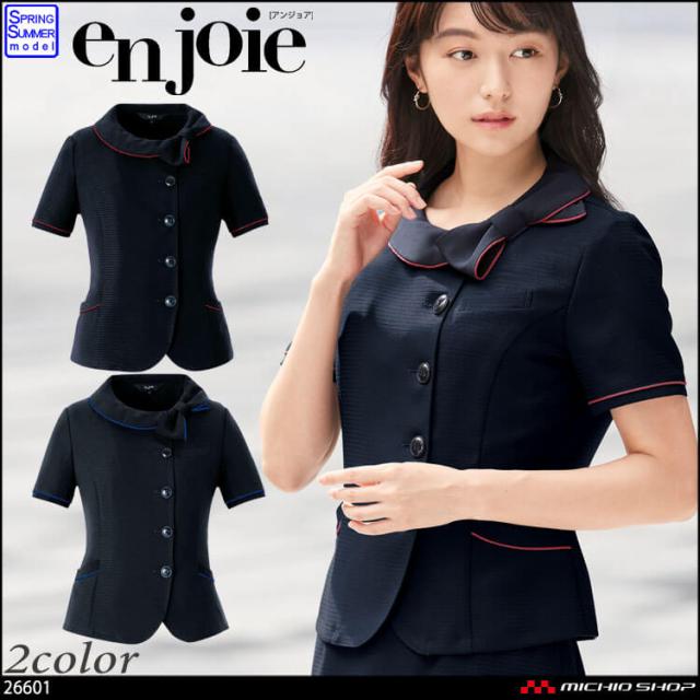 ユニフォーム 接客 企業受付 制服 ユニフォーム en joie アンジョア オーバーブラウス 26601 サイズ21号〜25号 シャドーボーダー