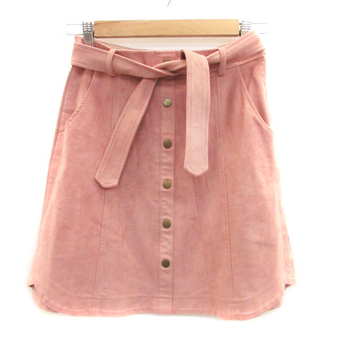 【中古】リランドチュール Rirandture フレアスカート ミニ丈 リボンベルト付き スエード調 2 ピンク レディース