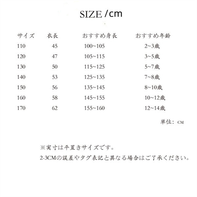 サイズ展開が豊富で兄弟やお友達とお揃いで着ても素敵ですね♪