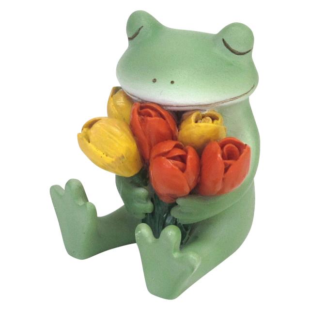 ●手のひらサイズのキュートなカエル、コポーシリーズの「チューリップを持つカエル」です。