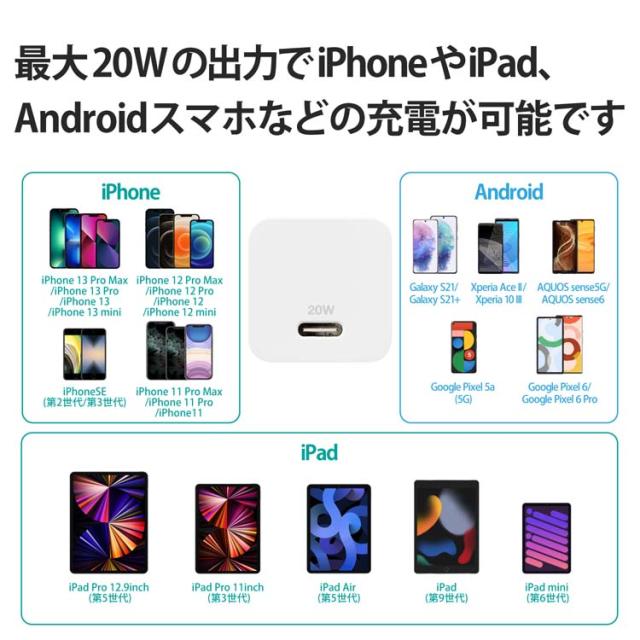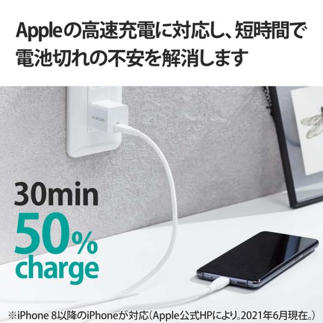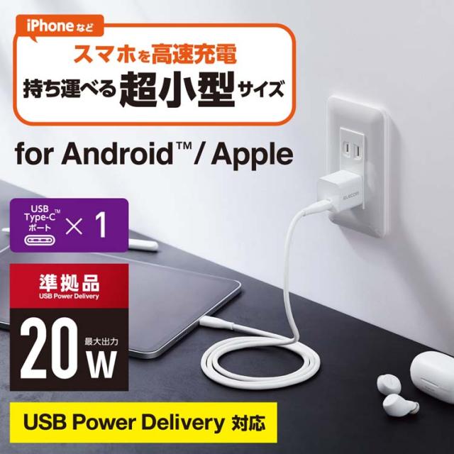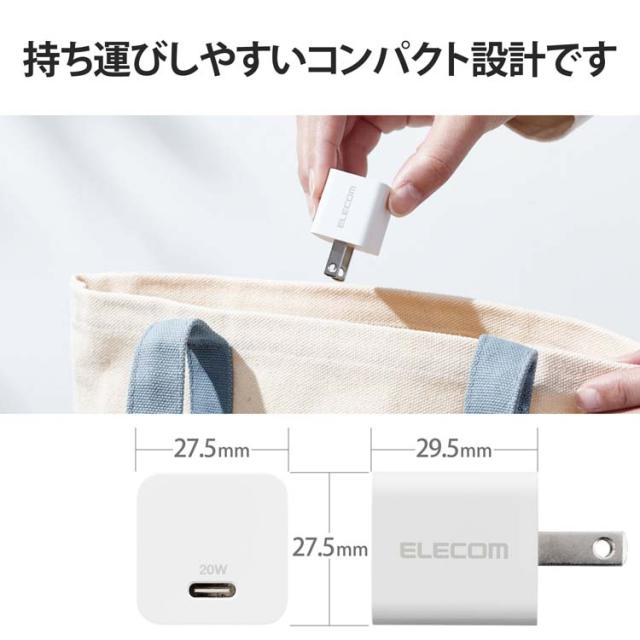 【エレコム USB 充電器 PD対応 20W Type-C *1ポート 小型 ホワイト MPA-ACCP28WHの商品詳細】