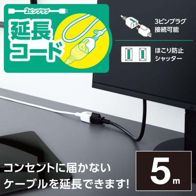 【エレコム 延長コード 電源タップ コンセント 5m 1個口 スイングプラグ ホワイトの商品詳細】